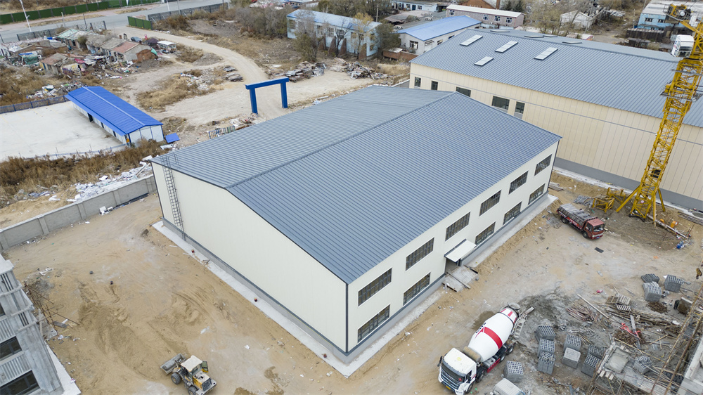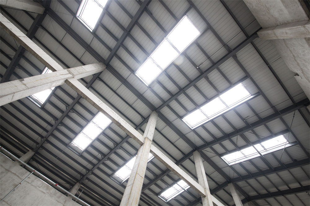 單個(gè)工程總建筑面積為:10077㎡,室外設(shè)計(jì)地面*其口與屋脊的平均高度為13.3米,墻面采用砌體結(jié)構(gòu),屋面采用輕鋼屋架結(jié)構(gòu),結(jié)構(gòu)為高低跨,不規(guī)則形狀,加工構(gòu)件種類多,對(duì)安裝精度要求高,屋面維護(hù)為150厚巖棉復(fù)合壓型鋼板坡屋面,設(shè)有多個(gè)采光帶,屋面單玻長(zhǎng),板重施工難度大,防水要求高。